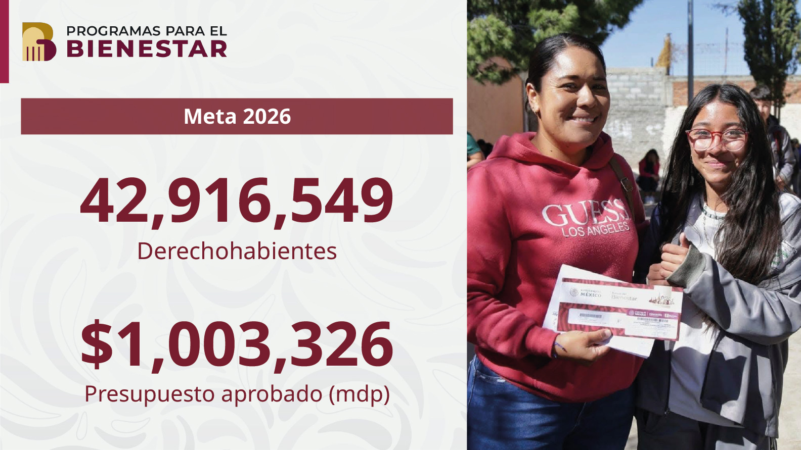 Los Programas para el Bienestar beneficiarán este 2026 a casi 43 millones de personas, una cifra sin precedentes en nuestro país, informó el coordinador general de Programas para el Bienestar, Carlos Torres Rosas.